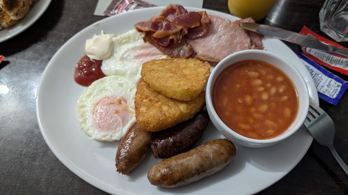 “Regular visitor here, family run cafe with polite, helpful staff. Full English breakfast is good, jacket potato with pulled pork and cheese is fantastic. Generous portions and good value for money, highly recommended.”